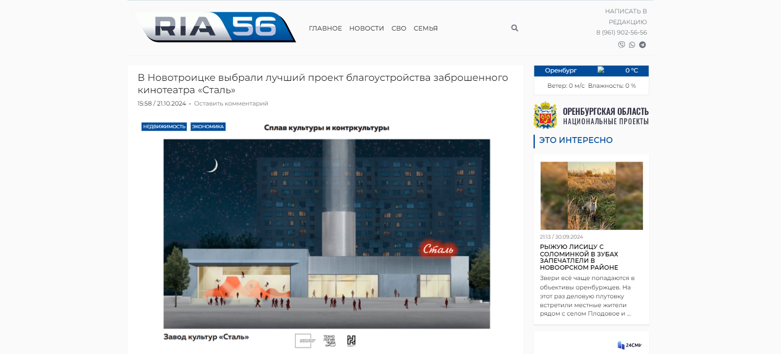 19 октября, в Новотроицке, состоялся финал очного этапа Всероссийского урбанистического хакатона «Города». В течение пяти дней его участники — молодые архитекторы и урбанисты из разных уголков страны — разрабатывали концепции благоустройства заброшенного кинотеатра «Сталь». На защите команды представили два проекта, один из которых, под названием «Завод культур “Сталь”», был признан лучшим.