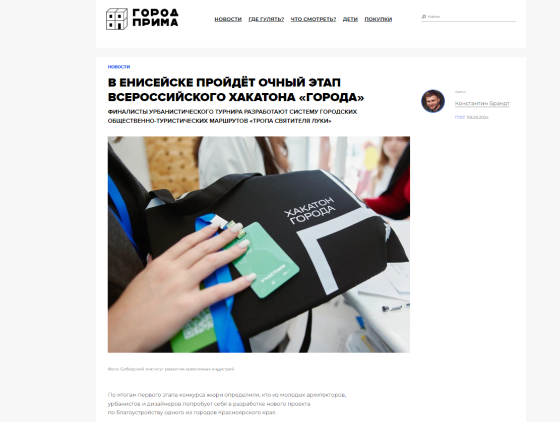 — Развитие городской среды — одна из глобальных задач креативных индустрий, и ее решает хакатон «Города». В этом году очные этапы пройдут в Тюменской и Оренбургской областях, Ставропольском и Красноярском краях. Двадцати финалистам нашего региона предстоит подготовить проект для Енисейска. В дальнейшем его реализация позволит повысить комфорт местных жителей.