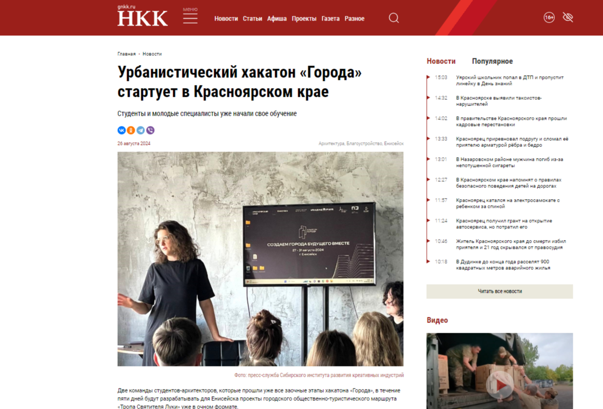 Красноярский край – первый регион в сезоне очных этапов хакатона «Города» 2024 года. Начинаем мы с лектория, а на следующий день участники хакатона переезжают в Енисейск, где наши ведущие эксперты через лекции, мастер-классы, общение с местным сообществом погрузят их в историко-культурный контекст города. Здесь они разработают проекты благоустройства важного объекта культурного наследия – места, где жил и работал Святитель Лука – объединив их в единый туристический маршрут, — отметила Марина Абрамова, президент АНО «Креативная экономика».